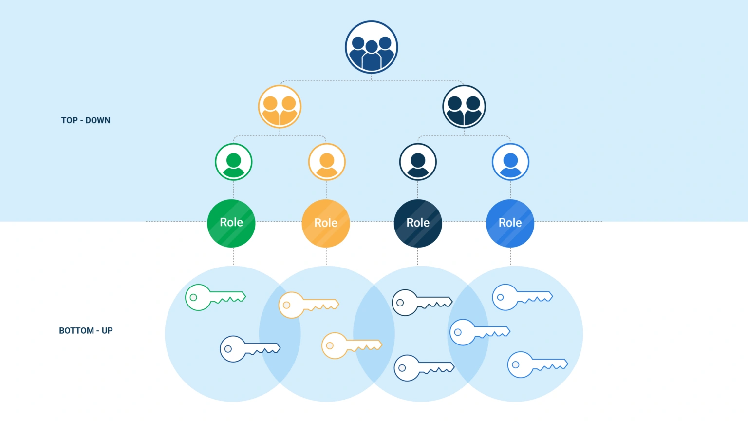 Role mining is a tool for implementing role-based authorization. At the same time, role-based authorization has its limitations. For well-defined roles, such as an administrator, you can usually manage access rights easily based on a person's role. We also refer to these as key roles. There are also roles for which this alone is not sufficient. We provide two examples: