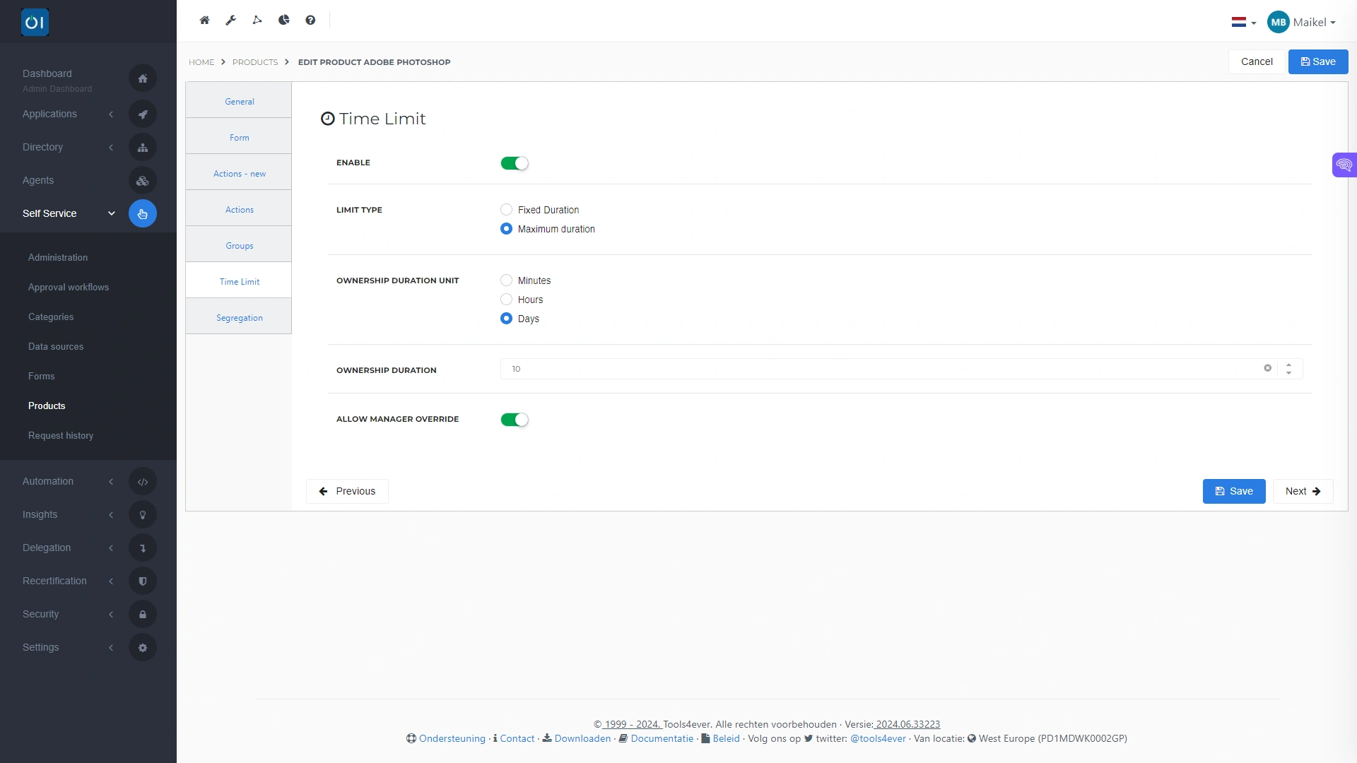 There are several options for this. An end user can return a product, and a manager or product owner can revoke authorizations as well. In practice we often see that revocation does not happen. This is not surprising because it is rarely an immediate priority and can be overlooked. Automating product revocation as soon as certain conditions are met solves this. You can revoke authorizations after a specific period, or when an employee leaves the organization. You can also set a maximum duration after which HelloID revokes the product automatically.